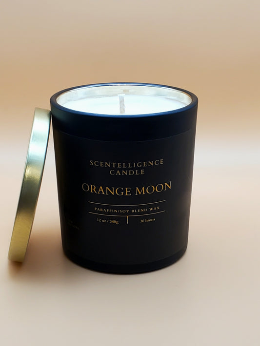 Orange Moon Candle – 12oz Hand-Poured | Sea Salt, Amber & Musk Paraffin/Soy Blend